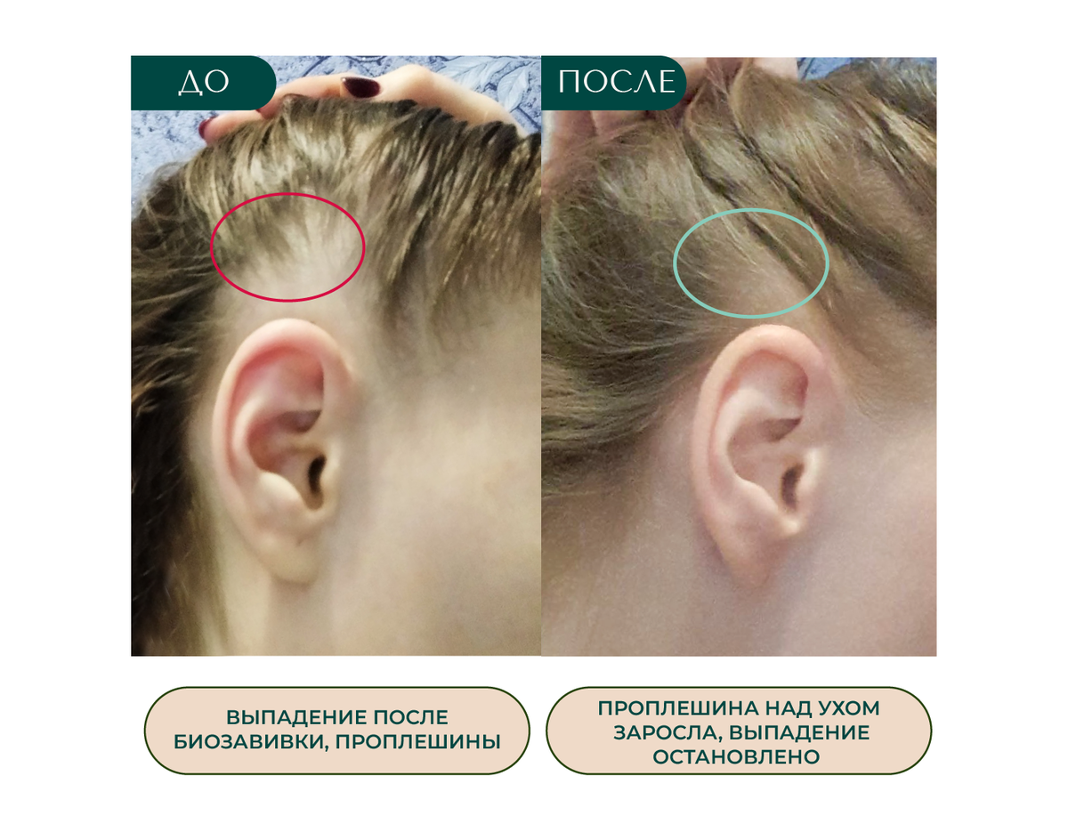Сильное выпадение после биозавивки и окрашивания, ломкость волос, проплешины над ушами, низкий уровень гемоглобина.