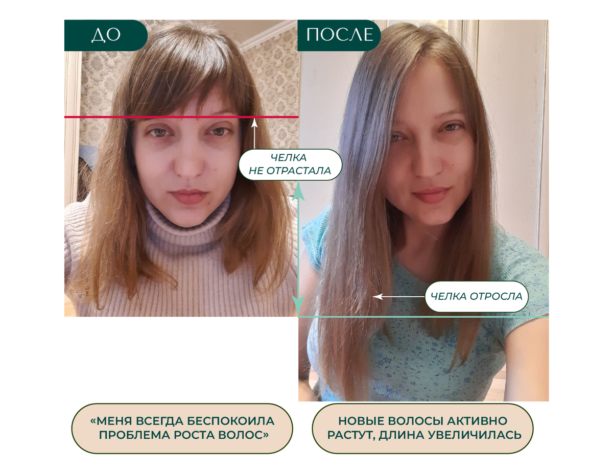 Зоны над висками заросли, рост волос увеличился в 2 раза, кончики перестали сечься, а волосы стали гладкими, блестящими, и напитанными по всей длине.